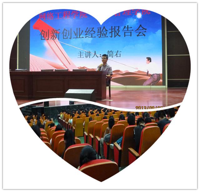 我校13届商务日语专业毕业生简右同学在创新创业经验报告会上通过介绍自己的创业经历,鼓励广大新生在校期间要积极参加大学生创业技能竞赛,主动参与创业实践,要善于“找出亮点、发展重点”,并于新生共勉“你若光明,世界就不黑暗”,获得了全场新生的共鸣。