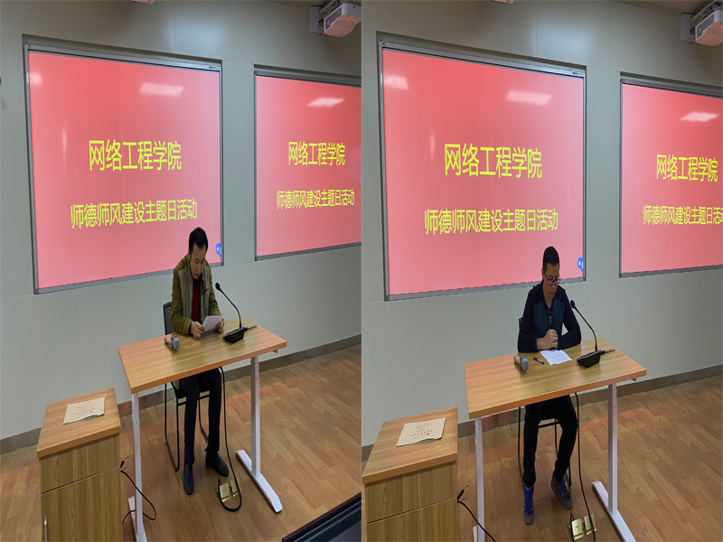 主题活动首先由网络工程学院党总支书记曹俊带领全体教师领学了《安徽省高等学校教师师德失范行为处理办法(试行)》、《新时代高校教师职业行为十项准则》以及《中华人民共和国公职人员政务处分法》等政策法规,引导全体教职员工讨论交流学习,同时鼓励全体教师要努力提升自身道德素质,建立良好的师生关系,用榜样力量和人格魅力感染、感召、影响学生。