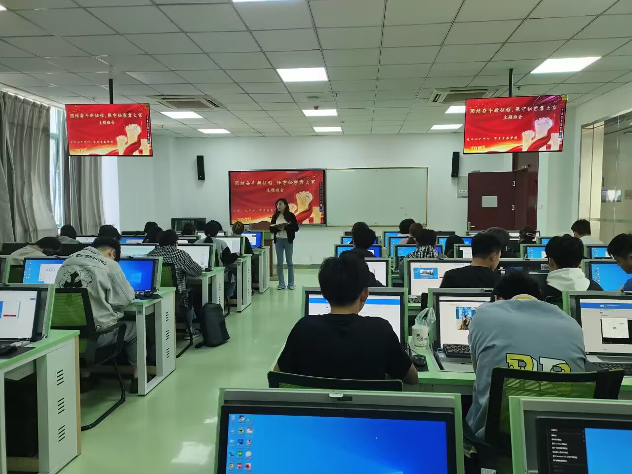 主题班会强使命。各班辅导员以《团结奋斗新征程,保守秘密靠大家》为题讲授了一堂保密专题班会课。班会紧紧围绕习近平总书记关于总体国家安全观战略思想,宣讲《大学生保密常识》读本,阐述新时代保密工作的重要性,为同学们增强保密意识、提升保密能力做了明确的示范指引。