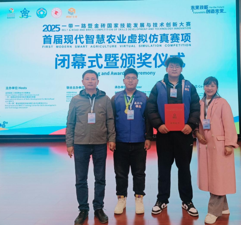 10月24日至26日,2025一带一路暨金砖国家技能发展与技术创新大赛首届现代智慧农业虚拟仿真赛在山东枣庄举行。本次赛事作为聚焦智慧农业领域的高水平国际赛事,吸引了全国100多所院校的200余支队伍同台竞技。网络工程学院学生代表队经过一个多月的刻苦训练,凭借扎实的专业功底、出色的团队协作,在高职赛道100多支队伍的激烈角逐中脱颖而出,最终斩获一等奖,充分展现了我院学子在大数据分析、物联网应用等领域的专业能力与综合素养。同时,学校获得最佳组织奖。